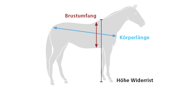 Um die Werte für die Formel zu bestimmen, müssen Sie mit einem Maßband den Brustumfang und die Körperlänge des Tieres, vom Humeruskopf bis zum Tuber ischiadicum, bestimmen (Abb. 2). Diese Maße sind in die Formel einzusetzen. Bei einem Brustumfang von 170cm und einer Körperlänge von 180cm ergibt sich die folgende Gleichung: