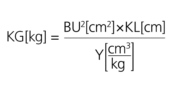 KG = (170cm x 170cm x 180cm) / 11.877,4